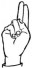 На ћирилици написано БОРИСАВА ВЕЉОГЛАВАЦ састоји се из 18 слова [?]. Исписано ћириличном једноручном азбуком за глувонеме: